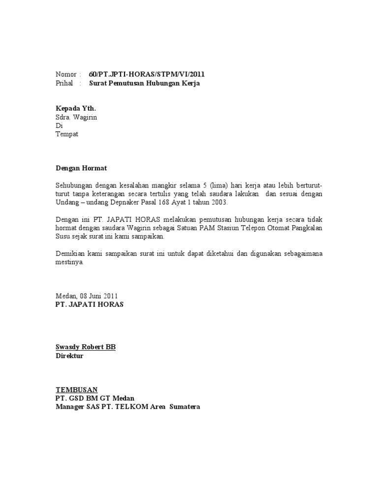 Contoh Surat Pemberhentian Kerja Dari Majikan / Contoh Surat Diberhentikan Kerja Oleh Majikan